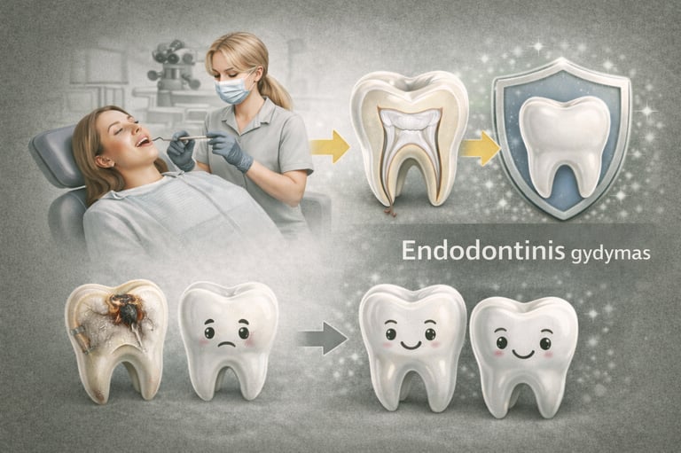 Endodontinis gydymas, dar vadinamas šaknų kanalų gydymu, atliekamas tuomet, kai į danties vidų patenka uždegimas. Paprastai tai nutinka dėl gilaus karieso, danties pažeidimo ar traumos.