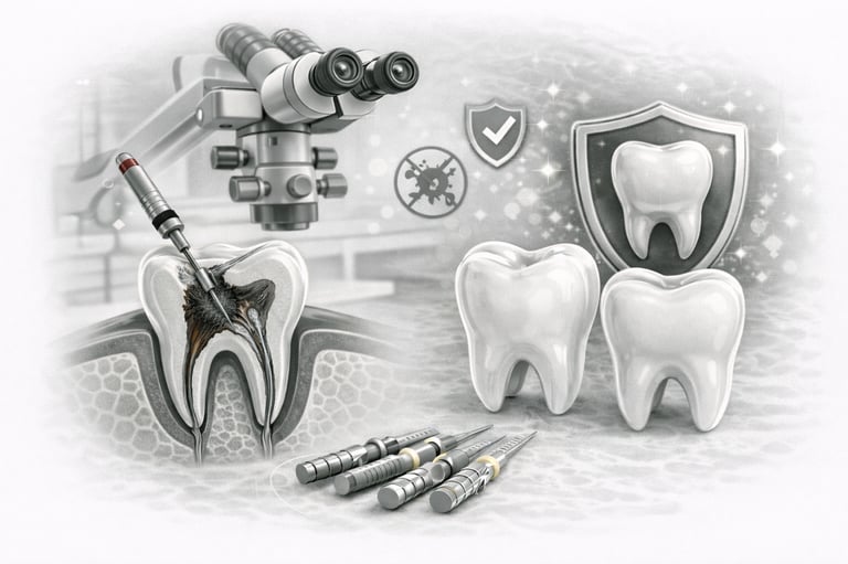 Šaknų kanalų gydymas atliekamas tada, kai danties pažeidimas yra toks gilus, kad įprasto plombavimo nebeužtenka. Tai padeda išvengti danties rovimo ir leidžia išsaugoti jo funkciją bei estetiką.